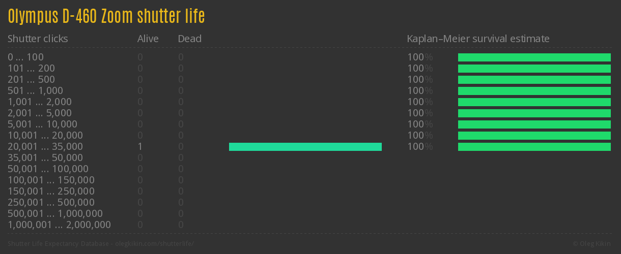 Direct link to this page: Olympus D-460 ZoomAverage number of actuations after which shutter is still alive: 24,000.0
