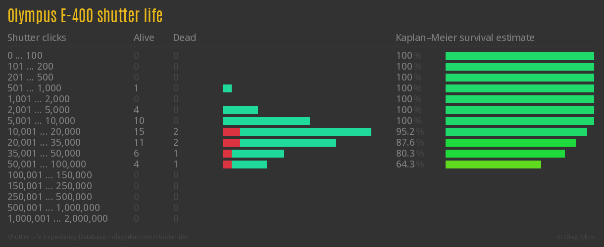 Direct link to this page: Olympus E-400Average number of actuations after which shutter is still alive: 23,948.6