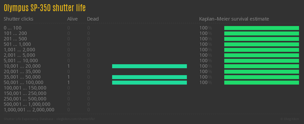Direct link to this page: Olympus SP-350Average number of actuations after which shutter is still alive: 46,733.3