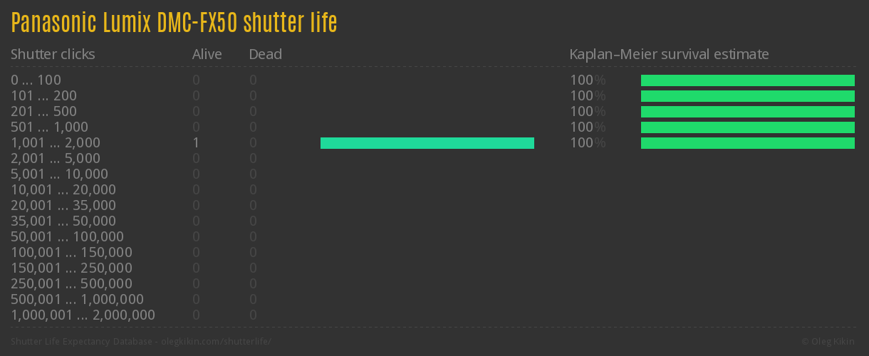 Direct link to this page: Panasonic Lumix DMC-FX50Average number of actuations after which shutter is still alive: 2,000.0