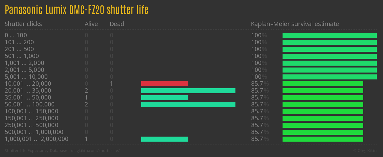 Direct link to this page: Panasonic Lumix DMC-FZ20Average number of actuations after which shutter is still alive: 216,829.3