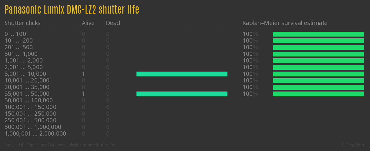 Direct link to this page: Panasonic Lumix DMC-LZ2Average number of actuations after which shutter is still alive: 23,802.0