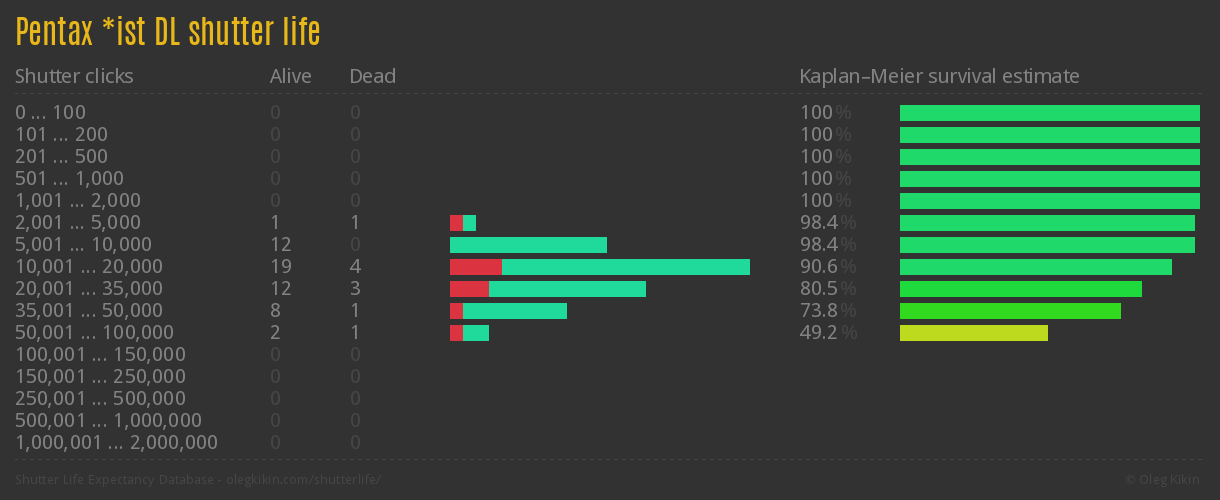 Direct link to this page: Pentax *ist DLAverage number of actuations after which shutter is still alive: 20,927.6