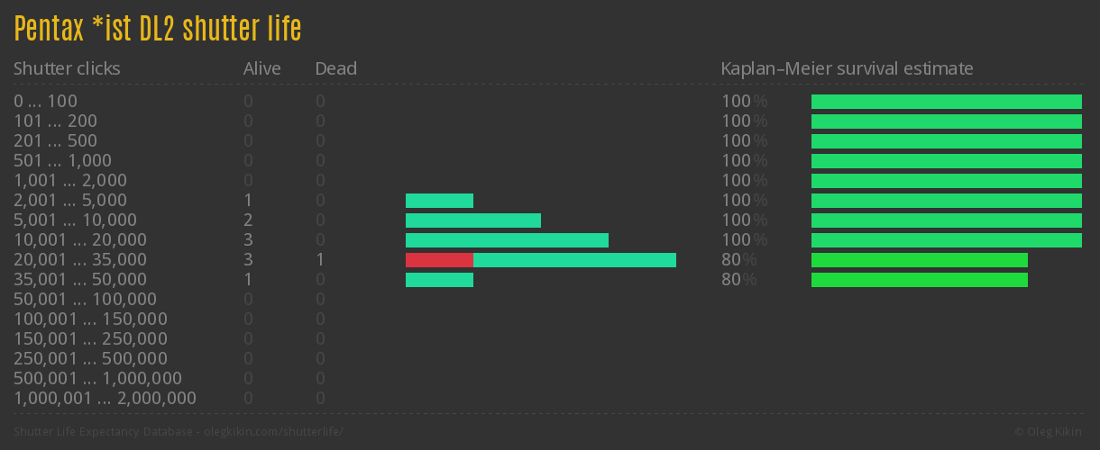 Direct link to this page: Pentax *ist DL2Average number of actuations after which shutter is still alive: 17,833.8