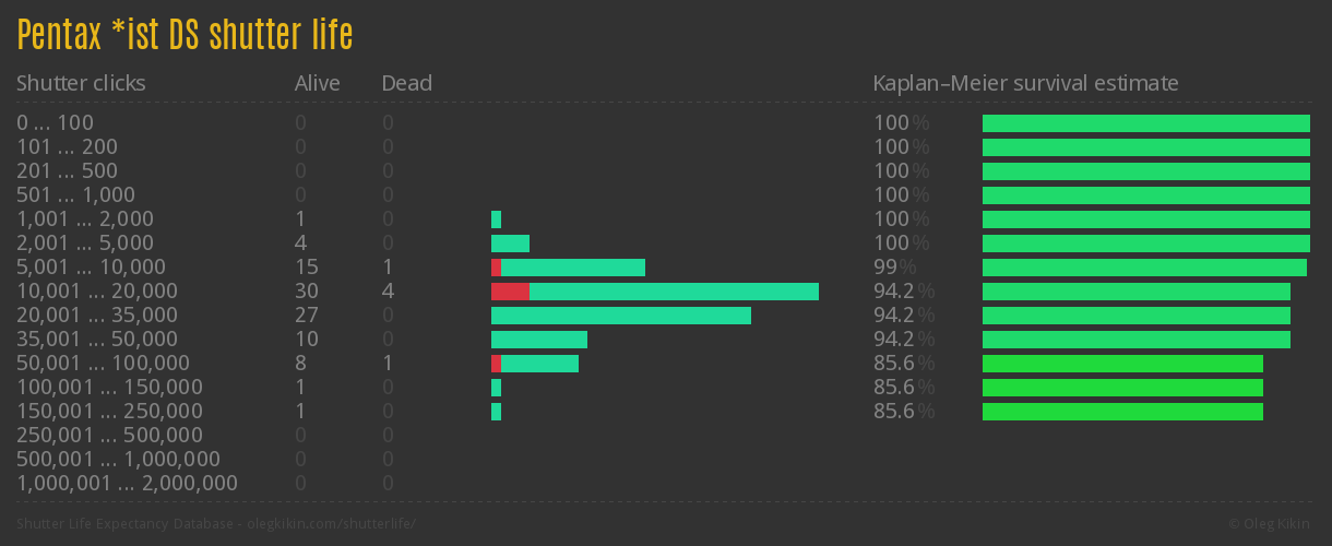 Direct link to this page: Pentax *ist DSAverage number of actuations after which shutter is still alive: 26,395.5