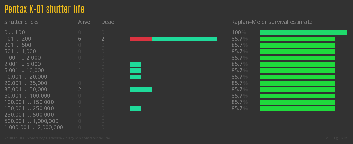 Direct link to this page: Pentax K-01Average number of actuations after which shutter is still alive: 28,800.9