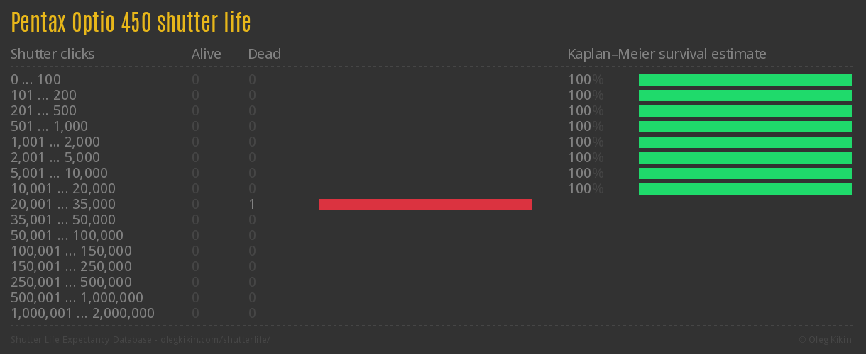 Direct link to this page: Pentax Optio 450Average number of actuations after which shutter is still alive: no data