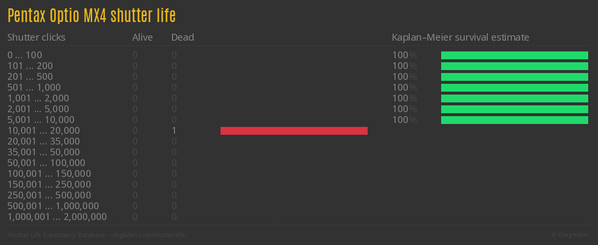 Direct link to this page: Pentax Optio MX4Average number of actuations after which shutter is still alive: no data