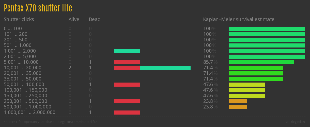 Direct link to this page: Pentax X70Average number of actuations after which shutter is still alive: 10,666.7