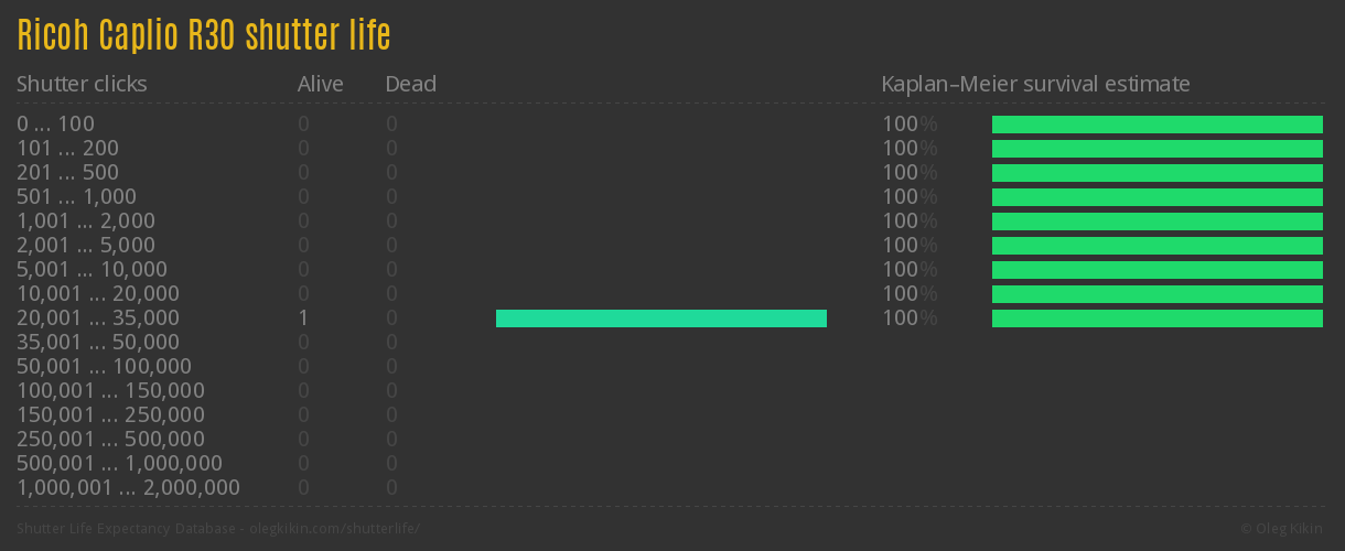 Direct link to this page: Ricoh Caplio R30Average number of actuations after which shutter is still alive: 30,812.0