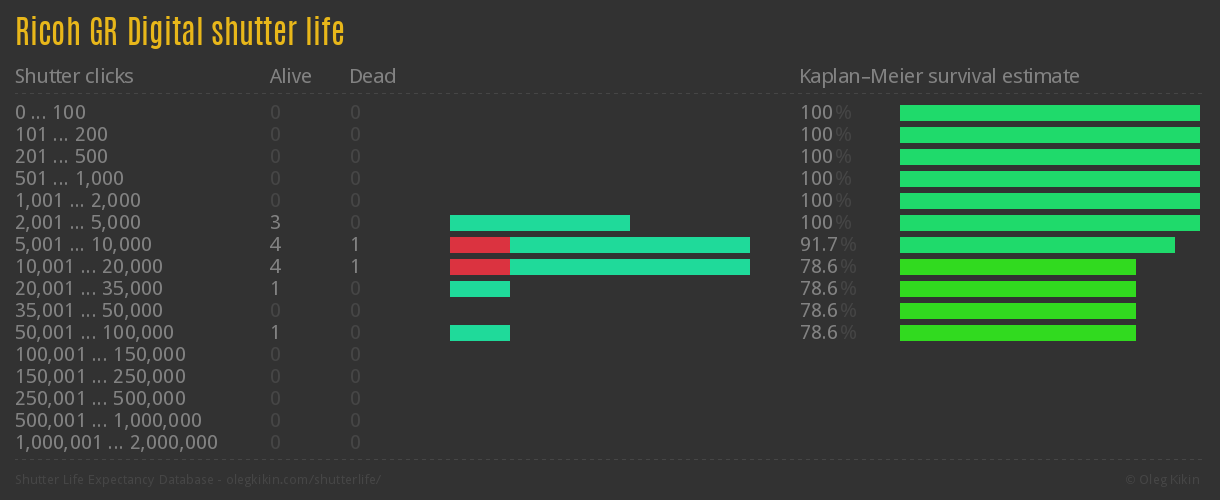 Direct link to this page: Ricoh GR DigitalAverage number of actuations after which shutter is still alive: 14,876.0