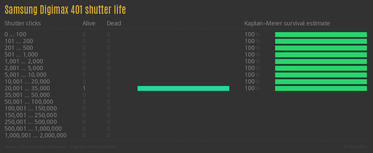 Direct link to this page: Samsung Digimax 401Average number of actuations after which shutter is still alive: 25,000.0