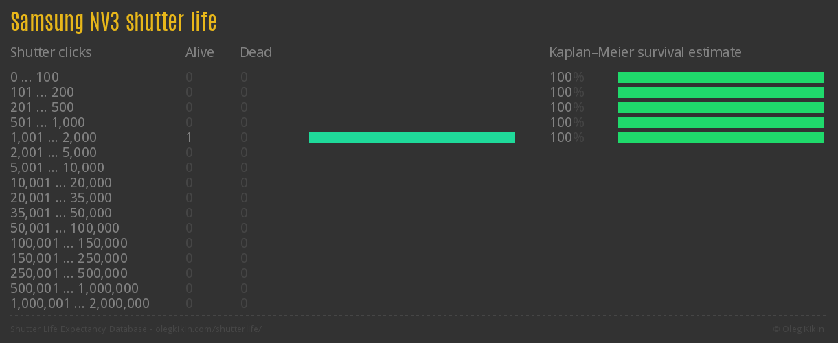 Direct link to this page: Samsung NV3Average number of actuations after which shutter is still alive: 1,300.0