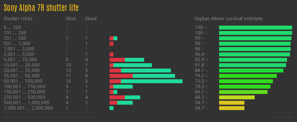 Direct link to this page: Sony Alpha 7RAverage number of actuations after which shutter is still alive: 116,342.7