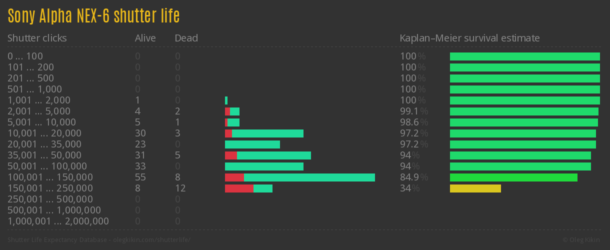 Direct link to this page: Sony Alpha NEX-6Average number of actuations after which shutter is still alive: 74,284.5