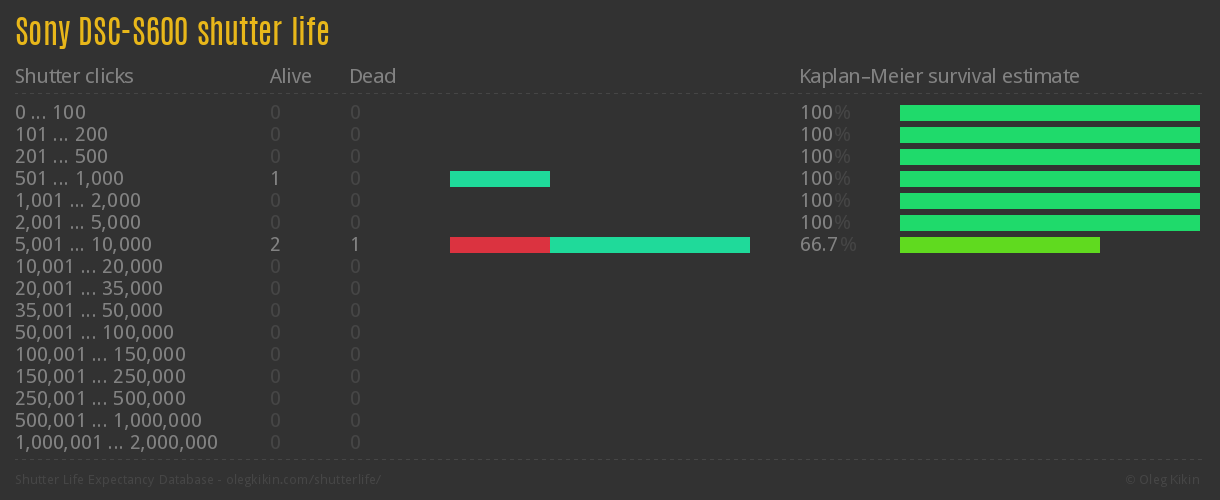 Direct link to this page: Sony DSC-S600Average number of actuations after which shutter is still alive: 5,543.3