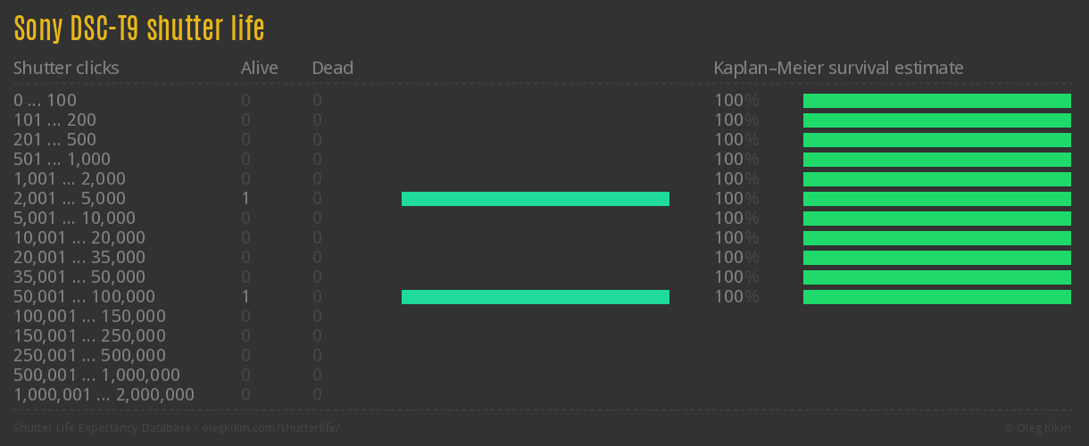Direct link to this page: Sony DSC-T9Average number of actuations after which shutter is still alive: 41,975.0