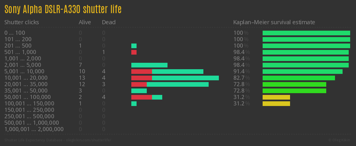 Direct link to this page: Sony Alpha DSLR-A330Average number of actuations after which shutter is still alive: 20,597.1